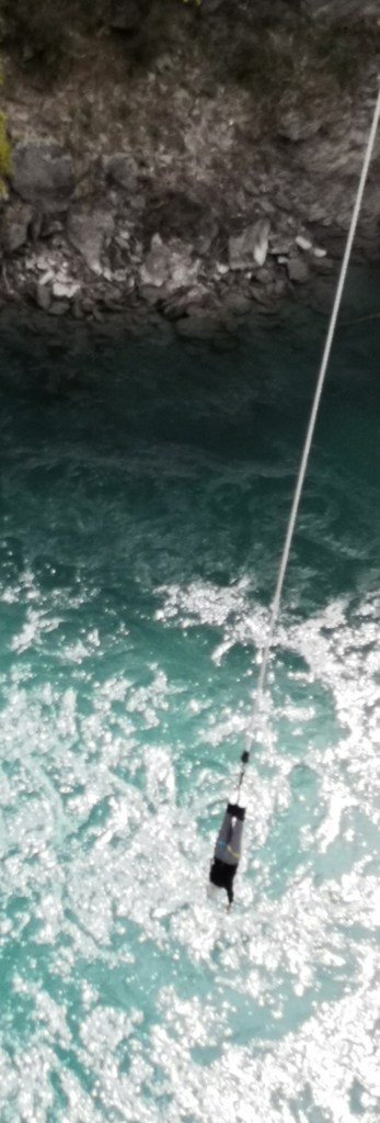 Afterwards we went to the Kawarau Gorge and the famous Kawarau suspension bridge, where A. J. Hackett Bungy established the world’s first commercial public bungy jump in 1988. Would anyone wish to jump? Not from our group, though we did watch this brave woman take the plunge into the lovely gorge.