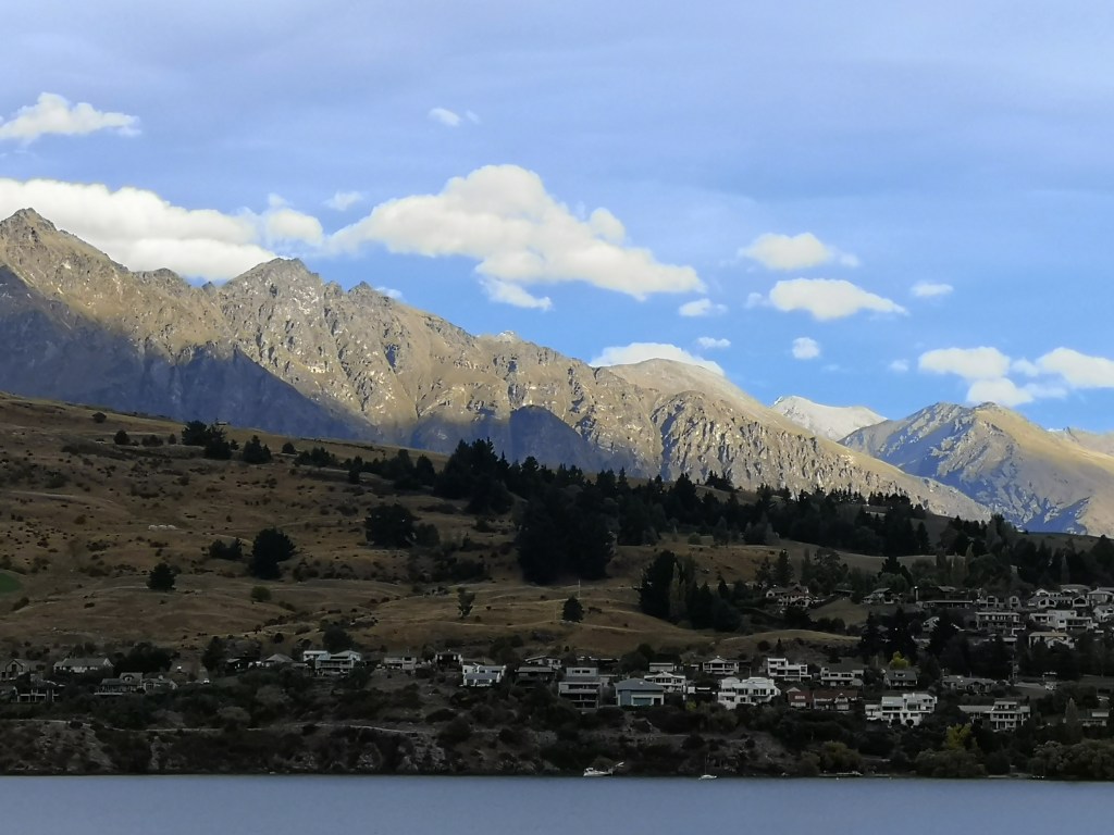 Okay. First stop (following the flight from Auckland) was the hotel Rees on the banks of Lake Wakatipu, Queenstown. We stepped into our room, and this was the view from the window.