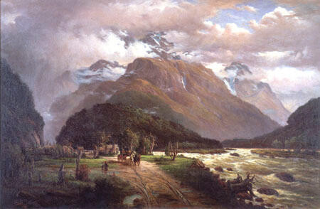 Kerry went through to the observation deck as we approached the gorge, so I didn’t try to take my own photos there. Unfortunately he didn’t get one either, because of the crowd on the deck. When trying to find an image of the gorge online, I found this lovely oil painting from the Christchurch Art Gallery collection, done by a Scots/ New Zealander, John Gibb (1831-1909). I tried to imagine him setting up with his paints and easel out in the wild, and couldn’t. He must have been made of hardy stuff.