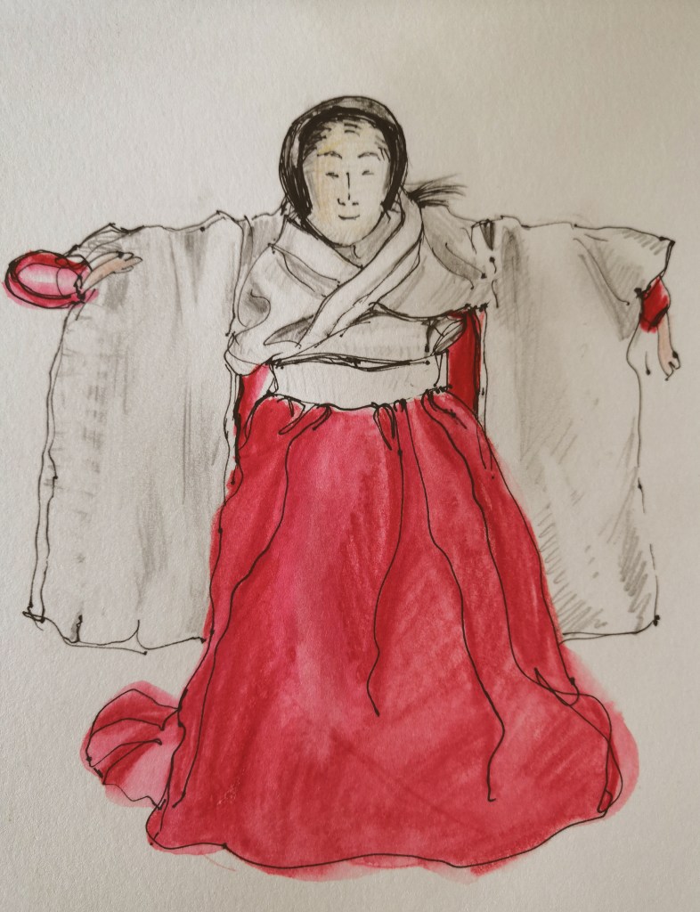 As we will not to be able to travel widely for some time, this week I have been looking at some mementos to sketch from the times I have been able to travel overseas. I have sketched many items I’ve brought home from places visited in the past, so I needed to find one I had overlooked. Ah ha! The chosen one is a very old (and rather grubby) fabric doll I bought in Japan, when living and teaching in Nara, several years ago. It was a special time, as an old friend from New Zealand had come to stay for a week or so, and we enjoyed tripping about when I had time off work.