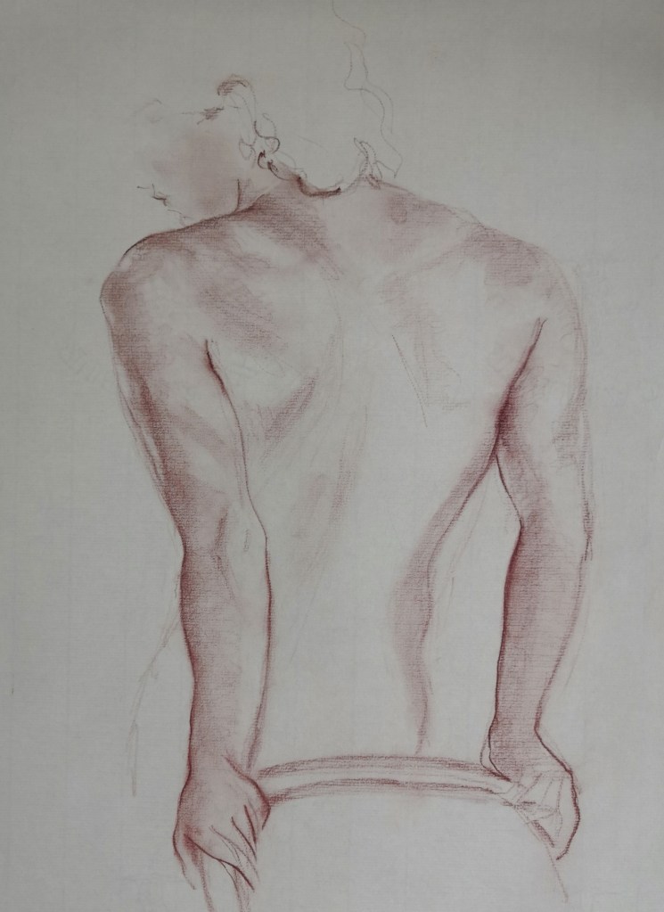 Conté is a mix of compressed graphite and charcoal, combined with a base of wax or clay. With conte, a mark cannot easily be erased, and its mastery comes through constant sketching. I used to use conté some years back for general and figure sketching. It is a medium one needs patience to master.