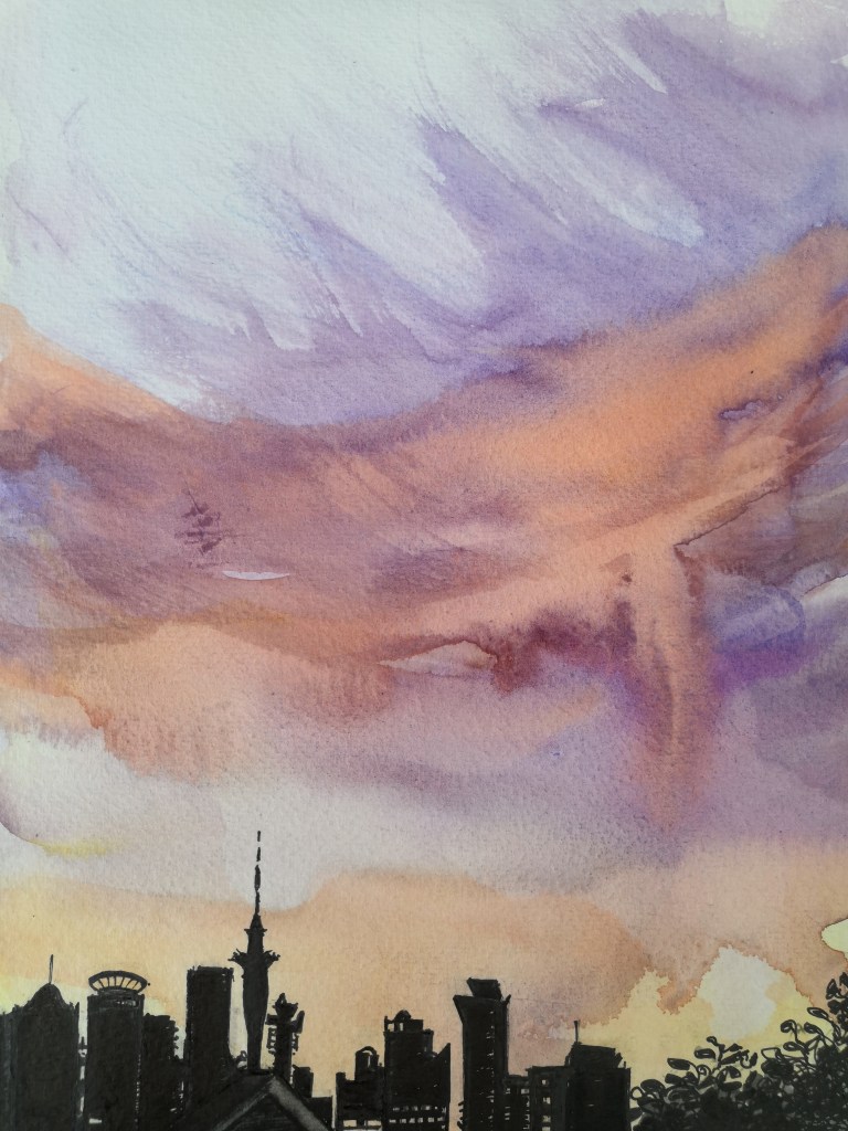 And last, a sketch in watercolour and ink I made of another sunset, around the same time.