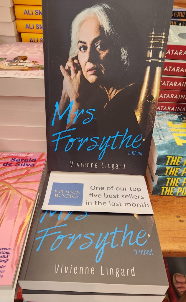 And then, yesterday, I was reading the best selling New Zealand fiction list from Nielsen, on our weekly write-up by Steve Braunias in his Reading Room column, and honestly couldn’t believe my eyes, because Mrs Forsythe was number 8 out of the top ten books of fiction. Yes, I am showing off a bit here, but truly, I am humbled.