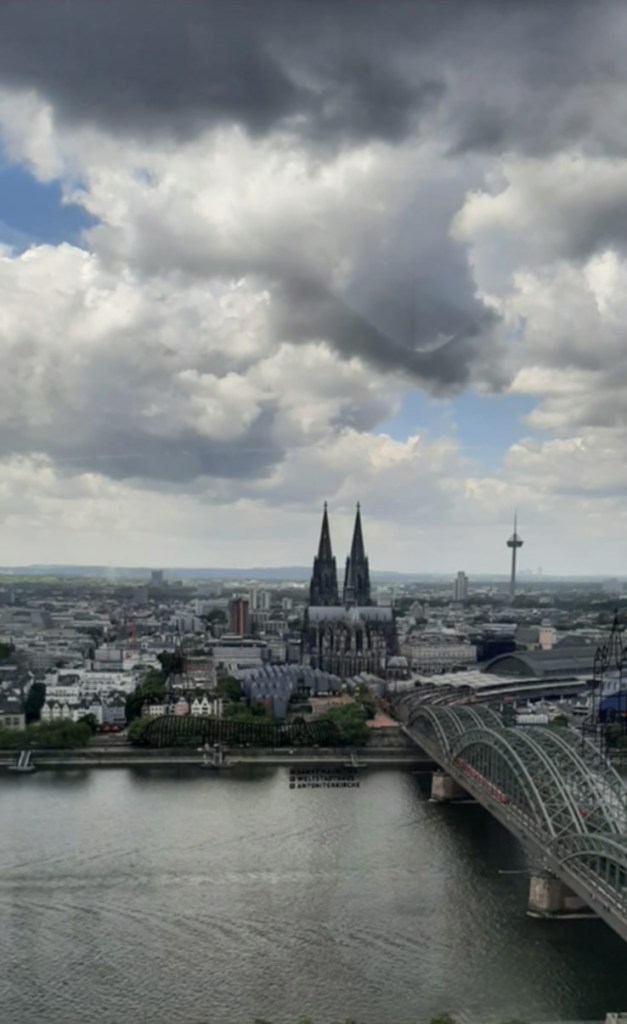 We continued our cruise through the night from Dordrecht, with me dreaming of the wonderful windmills we had seen in Kinderdijk that day. The ‘ship’ docked in Monheim at approximately 9am on Friday. Soon after we were on a coach and heading into Cologne where we would begin our walking tour. Our destination – the Cathedral. We needed to cross the bridge, you see in the photo, but so did zillions of others, and rather like we found in Amsterdam, the pedestrians had to fight with cyclists for the same space. I was surprised when the tour guide told us that we would likely be shouted at, or even sworn at by cyclists! And although I was never sworn at, the walk across the bridge was certainly memorable.