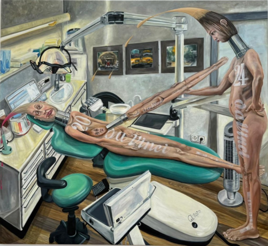 I’m sorry that I don’t have more images to show, but many of you have seen Picasso and the Impressionists etc. And I was wishing to show you something different, when we came across this interesting painting on the way out. It is probably even more important than the Picassos, or at least as intriguing, if you look at the name written in white on the image.
