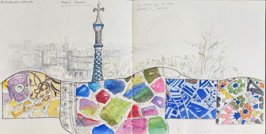 Barcelona was the group’s first stop, and we were all keen to set off sketching. The city offers so much for the artist, or any visitor come to that, and much of this we owe to the artist and architect Antoni Gaudi.